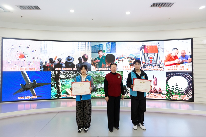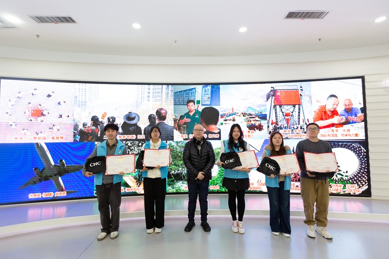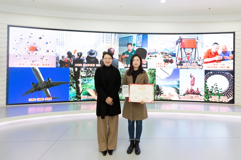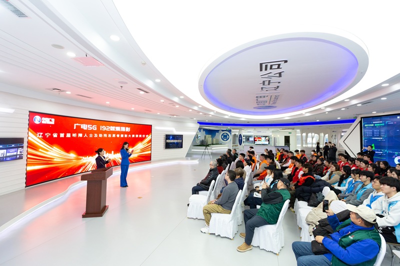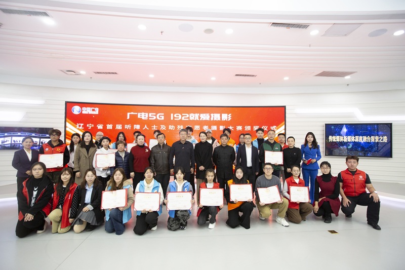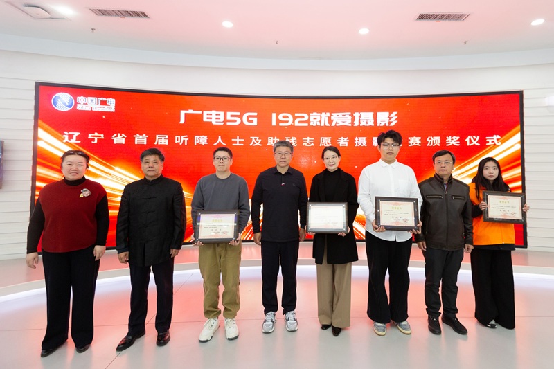 中國廣電遼寧公司傳媒公司經理季永新為聽障組、助殘志愿者組三等獎獲得者頒獎