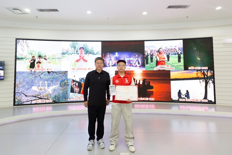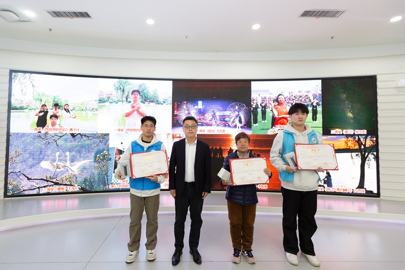 中國廣電遼寧公司黨委委員、副總經理馬震為助殘志愿者組一等獎獲得者頒獎