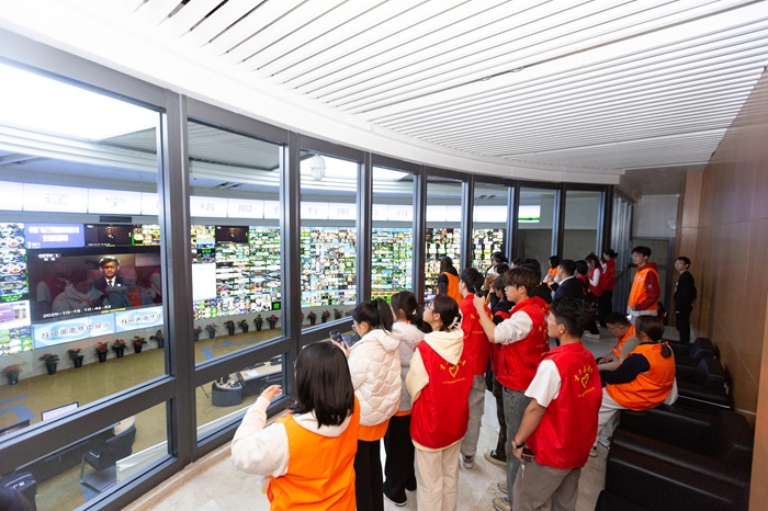 出席儀式的嘉賓走進公司5G應用創新綜合展示廳,深入總前端監控播控中心,全方位了解公司核心業務與技術創新成果